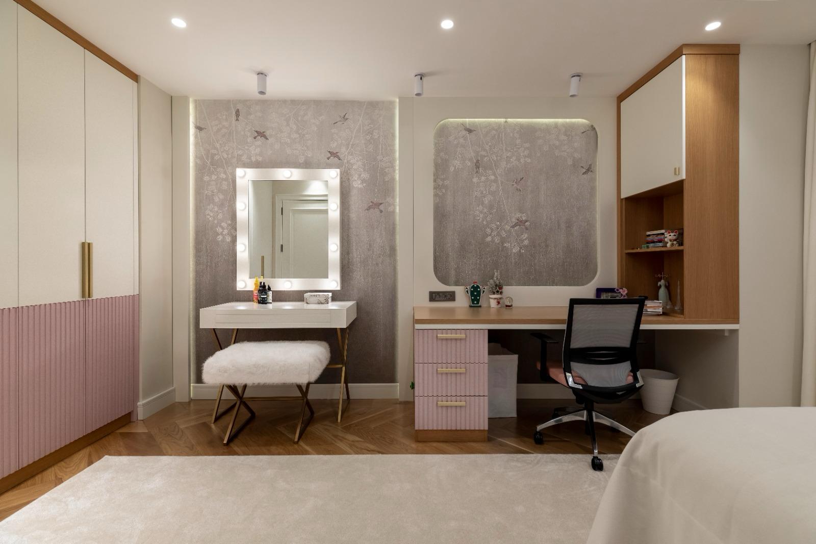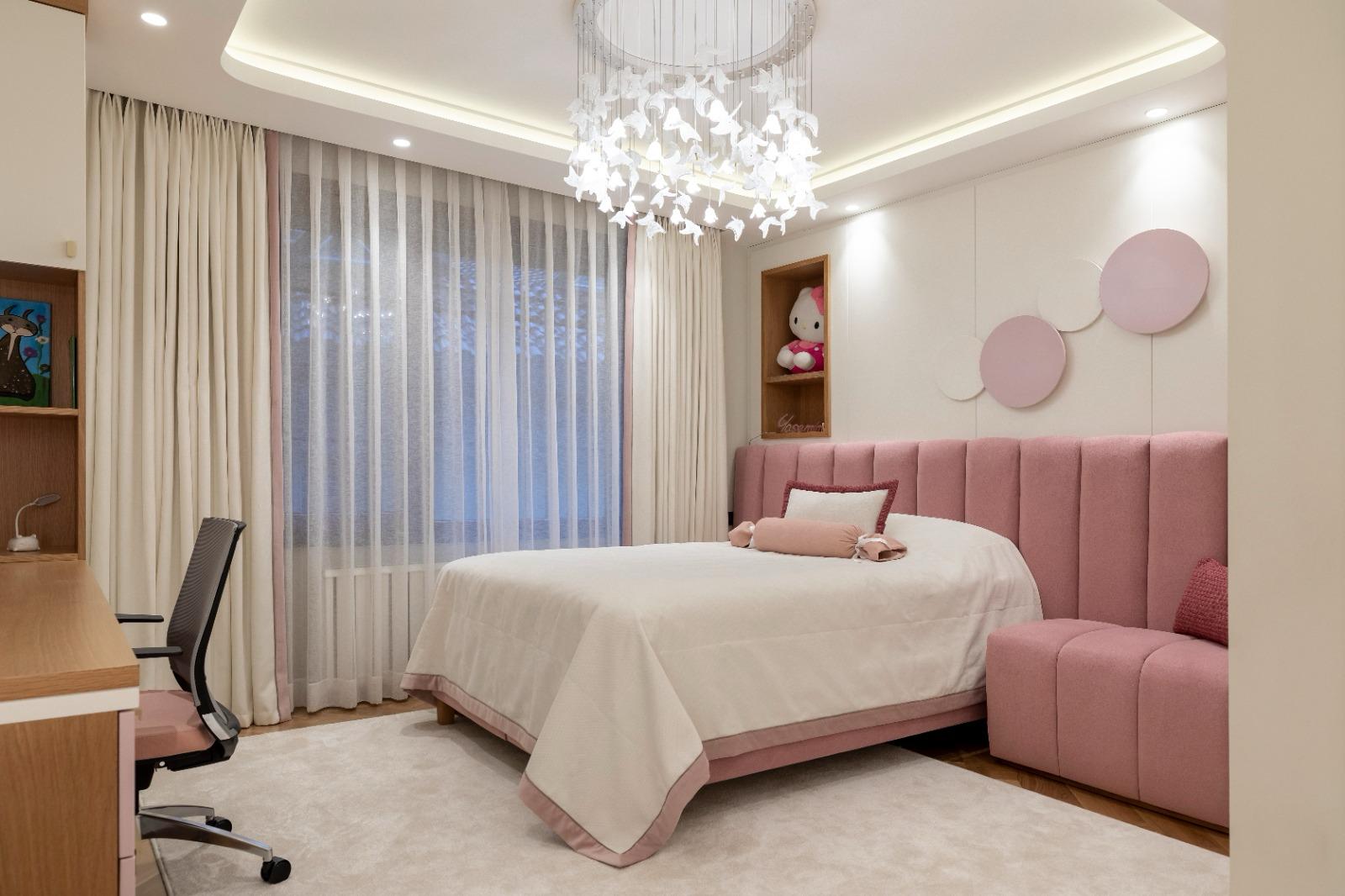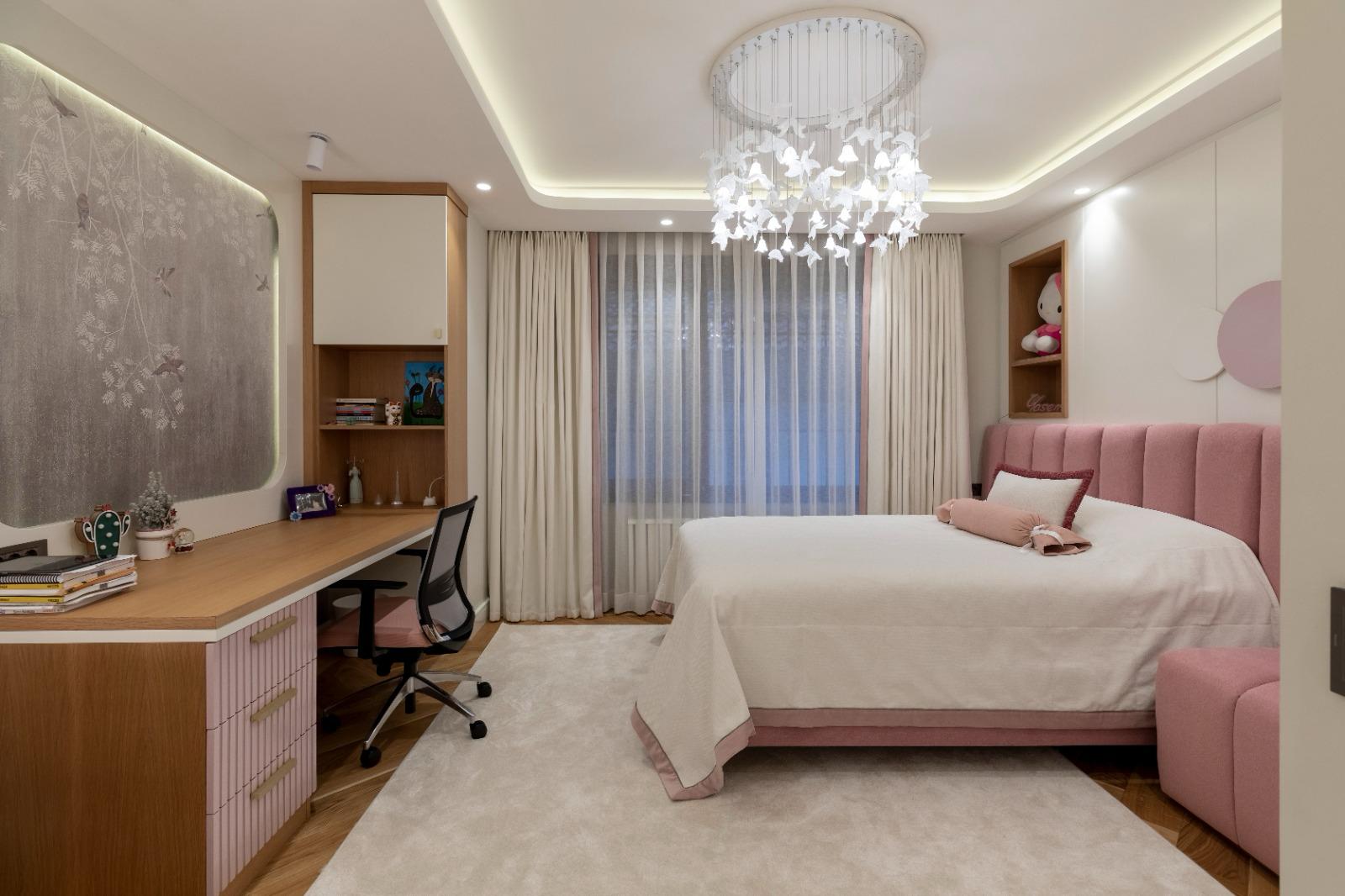 Projede, yaşam alanlarından özel hacimlere kadar uzanan tasarım dili; sıcak dokular, dengeli ışık kullanımı ve mekâna özel çözümler ile kurgulanmıştır.