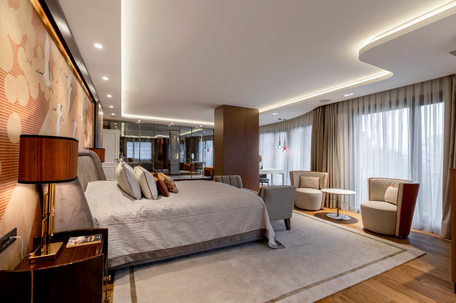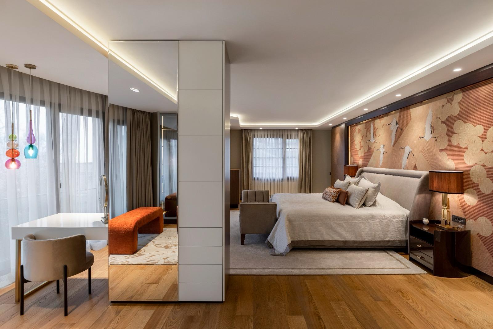 Lüks kavramının malzeme kalitesi, oran dengesi ve özel imalat detayları ile tanımlandığı bir iç mekân tasarımıdır.
